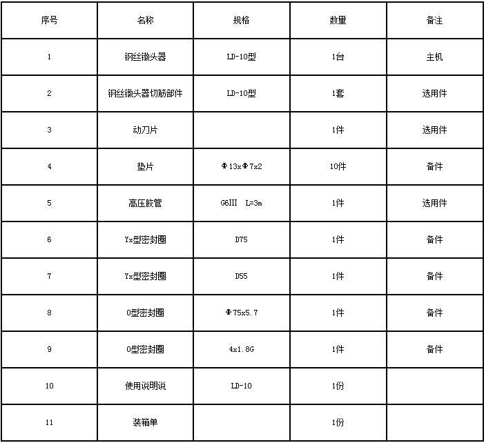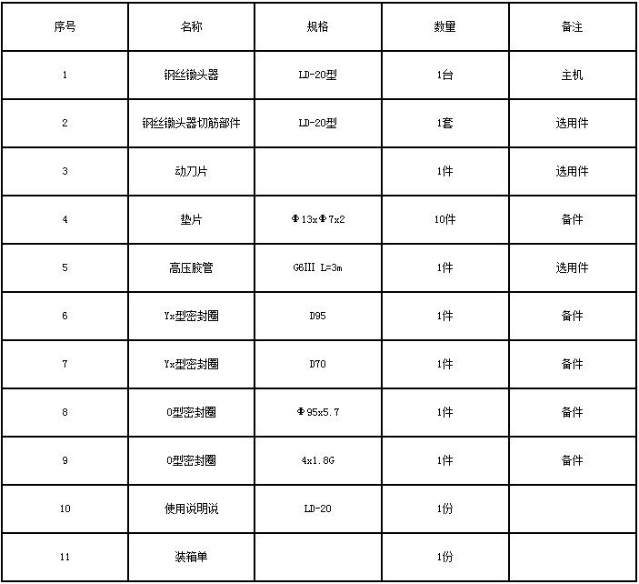 七、LD20型液壓鋼絲鐓頭器裝箱單