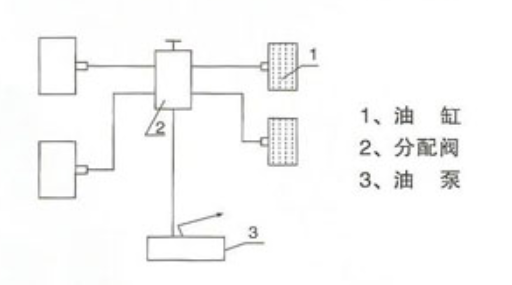 使用說(shuō)明 電動(dòng)泵: 一、用膠管把油缸與分配閥連接上(工四個(gè)油缸),然后把分配閥與油泵連接好:如圖下所示: