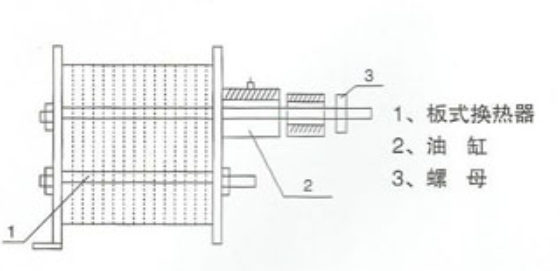 二、把油缸套在板式換熱器后,夾緊在螺旋上。如下圖所示: